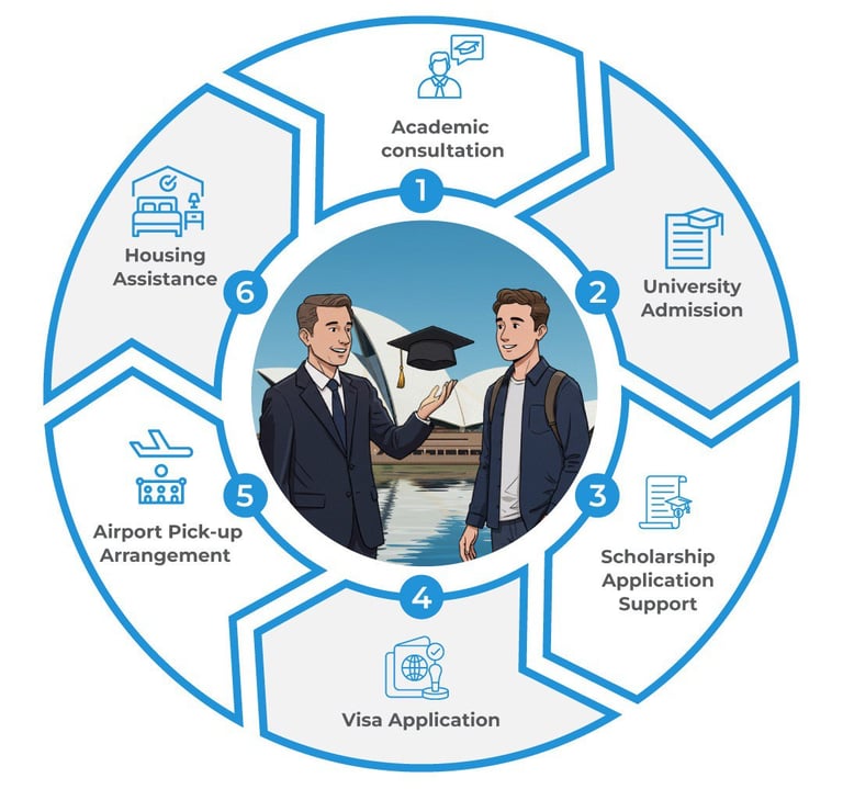 Comprehensive support for your educational journey to world-class universities in Australia.
